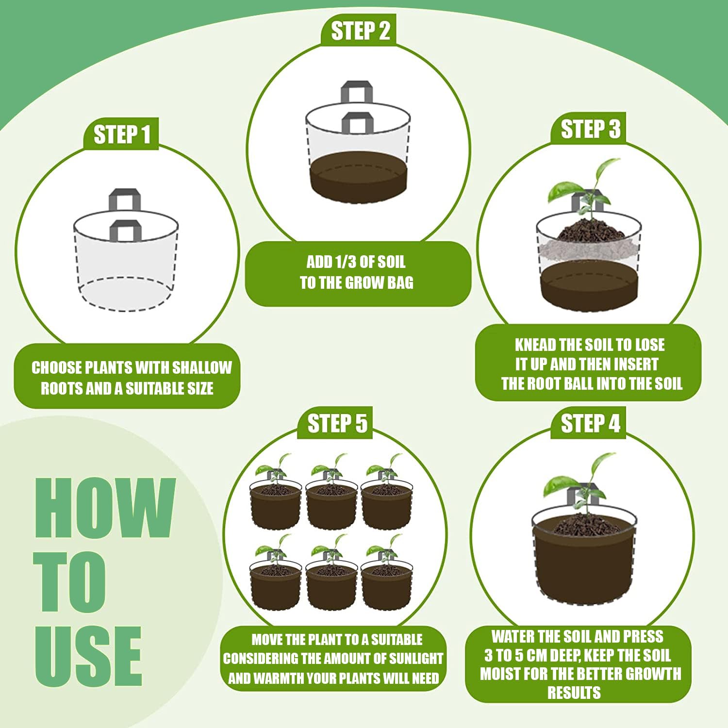 The grow bag does not retain excess water; it allows the roots to breathe for healthier and more vigorous growth. It prevents leakage and is tear-resistant.